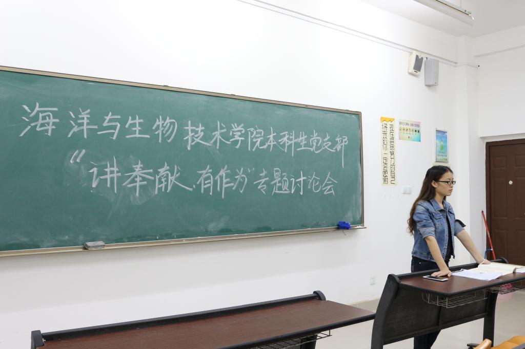 接着,与会党员和预备党员就对“讲奉献,有作为”的理解展开学习讨论。有的同志将自己近来的表现和讨论会主题联系起来,对自己的行为和思想进行了总结和自我检讨。15级生物技术班的黎俏娇说:“做大的贡献的话,我们大学生的能力还有限,但是班级、学院里的活动可以积极参加。从小的方面来讲,作为一名大学生最好贡献的就是好好学习,起到模范带头作用。”