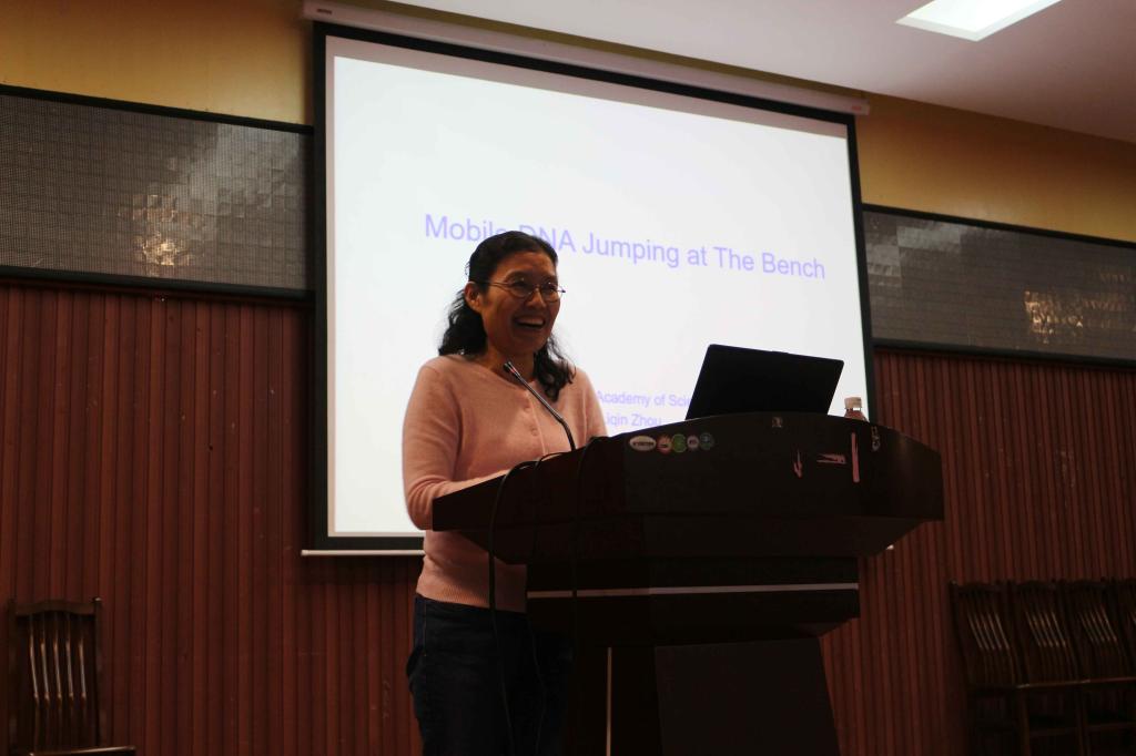 周礼芹博士通过假设和设计实验的方式对Mobile DNA jumping(移动DNA的跳跃)进行了分析。转座子是基因组中一段可移动的DNA序列,可以通过切割、重新整合等一系列过程从基因组的一个位置“跳跃”到另一个位置。目前转座子元件是植物分子生物学操作和植物基因工程中分离克隆基因和研究基因功能最有力的工具之一。周礼芹博士以她曾做过的三个转座子实验为例,图文并茂地向同学们展示了转座子的工作原理及其与免疫系统的联系。此外,周礼芹博士还向同学们介绍了微生物发酵、工业用酶及工业废物回收等方面的工作规划和研究现状。